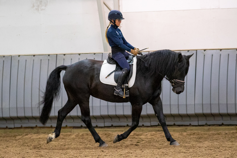 Ratsastaessa Nanni on usein laiskahko, joten sitä tarvitsee hieman huomautella, jotta se muistaa kulkea reippaasti eteenpäin. Nanni on oikein osaava hevonen - helppo A sujuu ongelmitta, ja se osaa myös joitakin vaativa B -tason liikkeitä, mm. avotaivutuksen ravissa. Osaavat ratsastajat saavat siis Nannista oikein mukavan ratsun itselleen, kunhan vain muistaa pitää tamman hereillä. Esteillä tamma innostuu hieman enemmän, ja 100cm on sille helppo nakki! Käännöksissä on pidettävä huoli, että antaa _selkeät_ pohjeavut, jotta tamma kääntyy tarpeeksi ajoissa ja saa hyvän tien esteelle, muuten tuloksena on usein joko liian kaukaa tai läheltä hyppääminen - tai pahimmassa tapauksessa kieltäytyminen. Nanni ei kuitenkaan paljoakaan kieltele, mutta vesihauta saattaa aiheuttaa ongelman, jos ratsastaja on jollakin tavalla epävarma eikä reippaasti ratsasta Nannia esteelle.